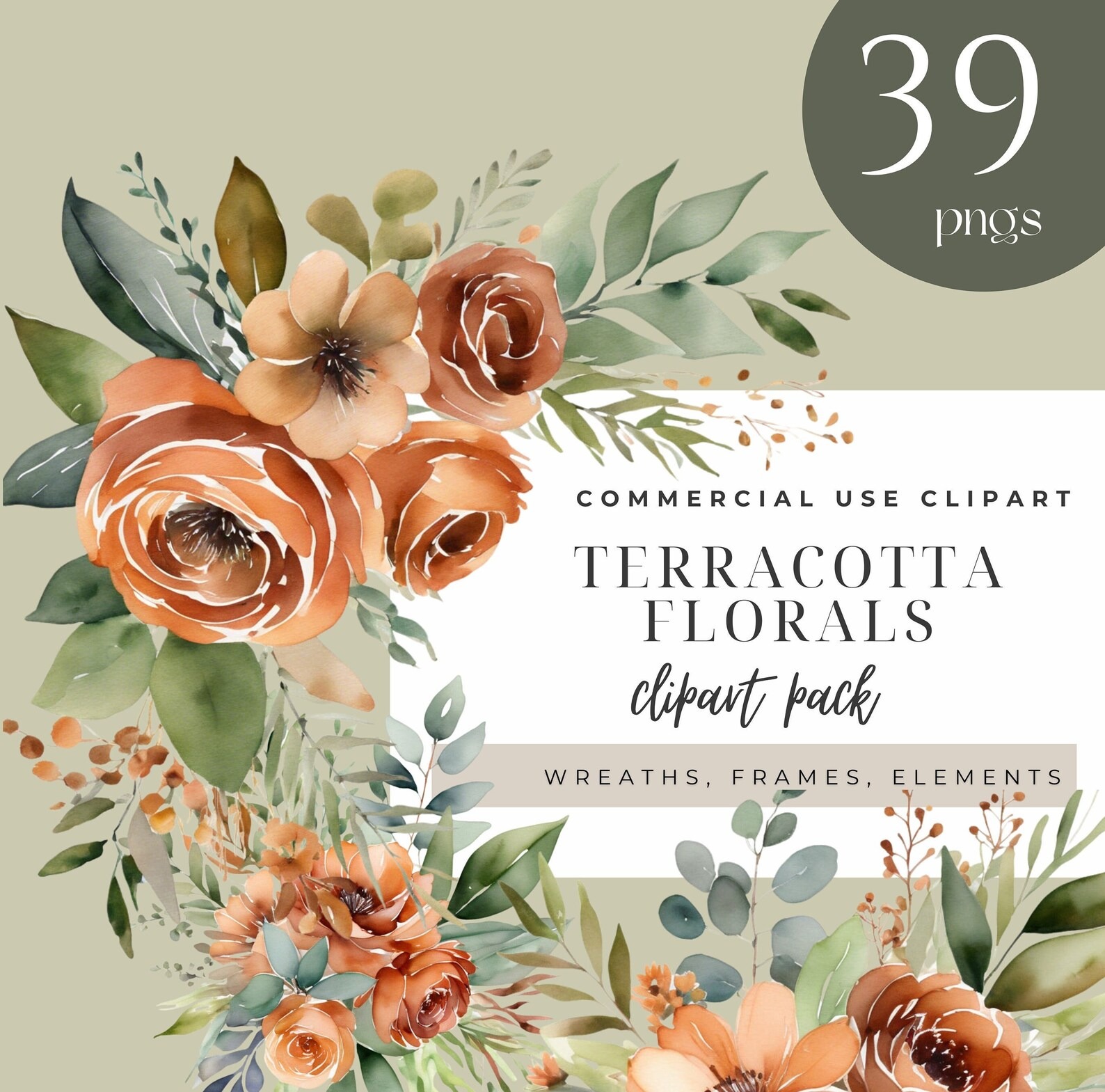 Terracotta Floral Clipart Pack, Autumn Clipart for commercial use, Orange & Brown Neutral Floral, Transparent PNGs, Wedding Botanical