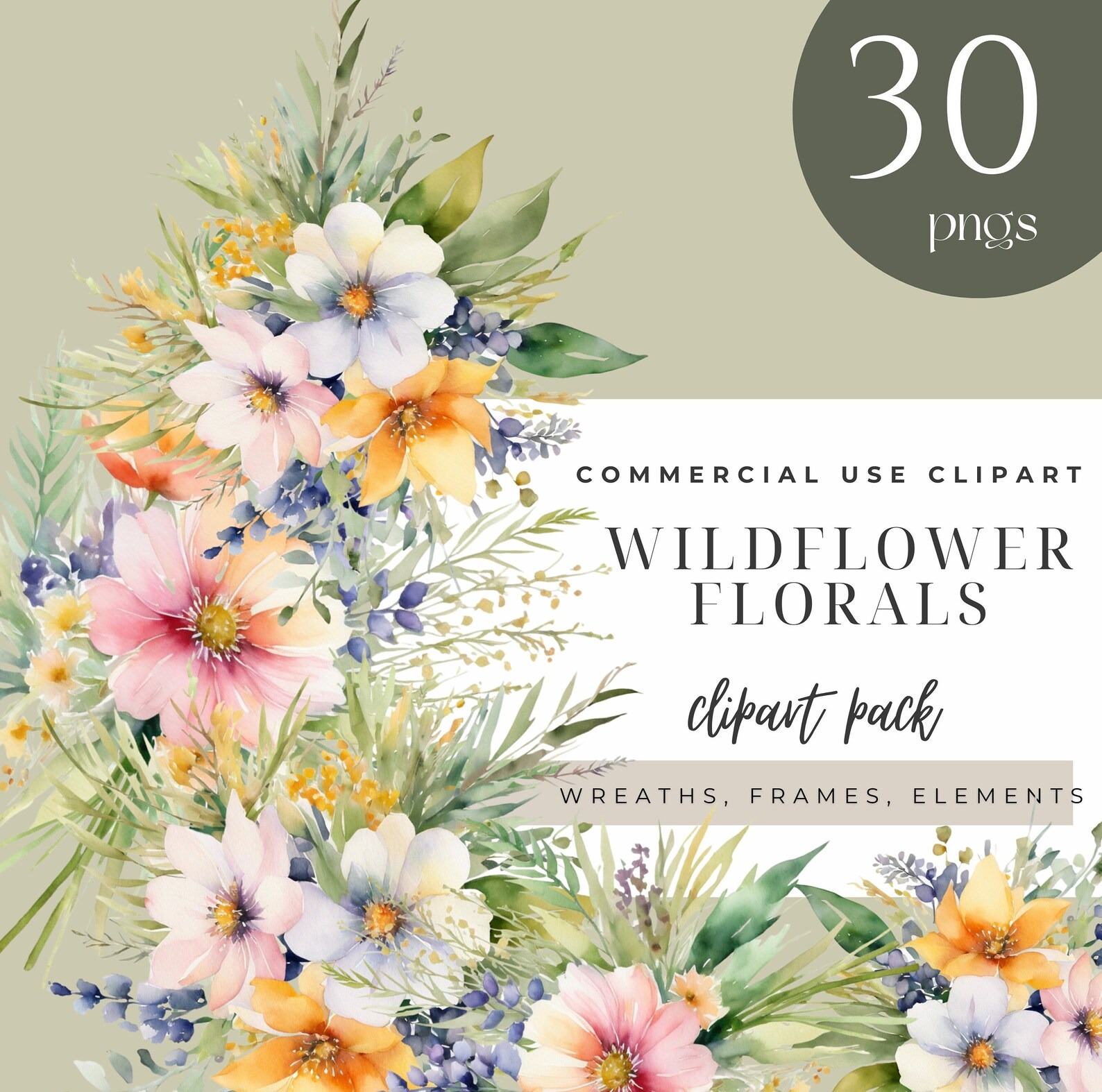 Wildflower clipart, Summer floral nature images, Wild flowers png for print, collage, scrapbook, junk journal Free commercial use