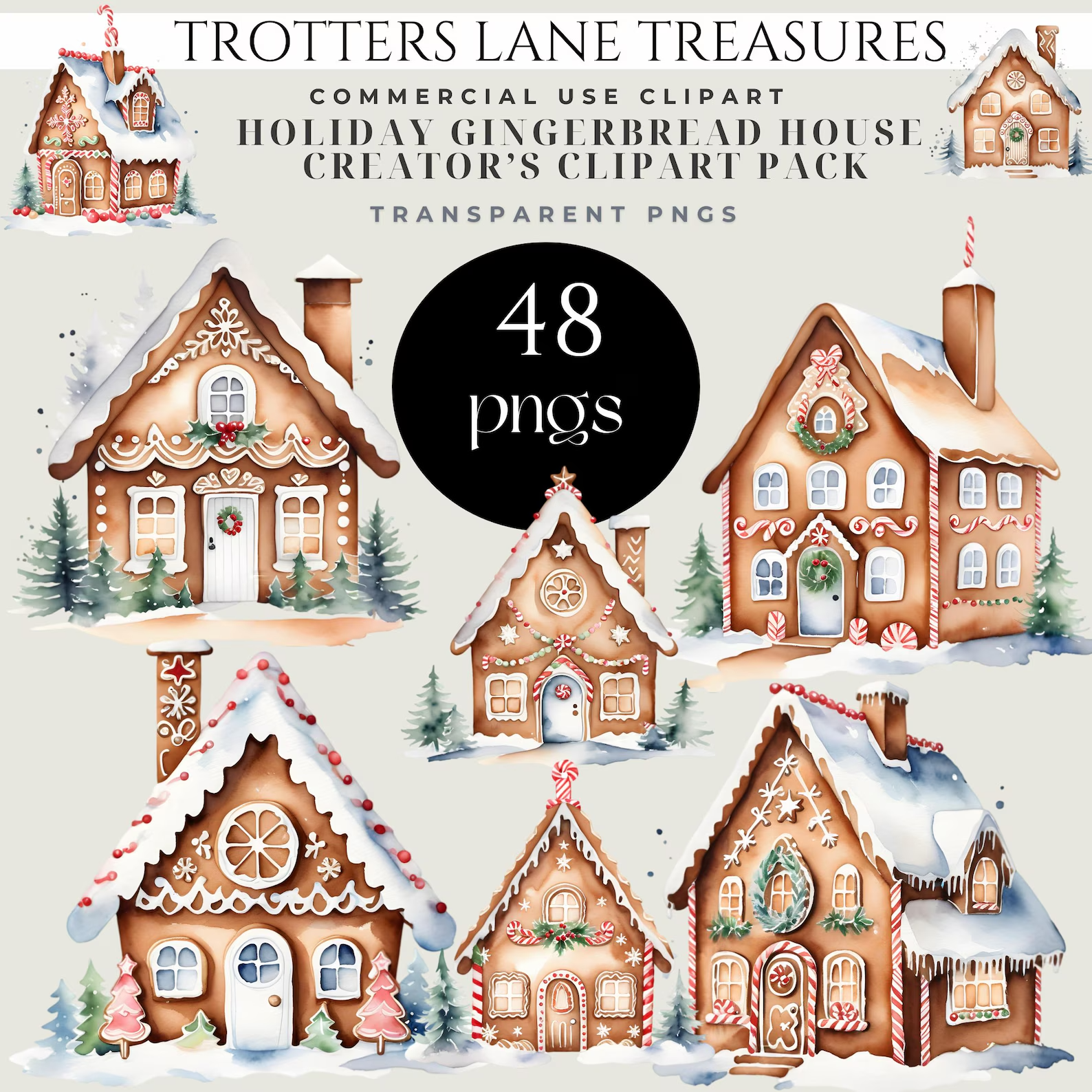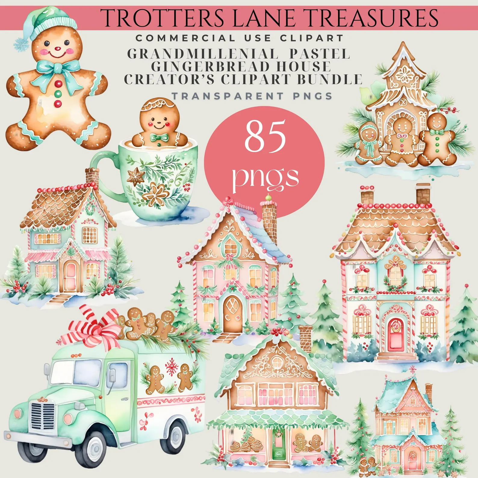 Grandmillennial Gingerbread Clipart - Pastel Christmas Houses - Cute Cookie Design Bundle, Retro Christmas Clipart Bundle