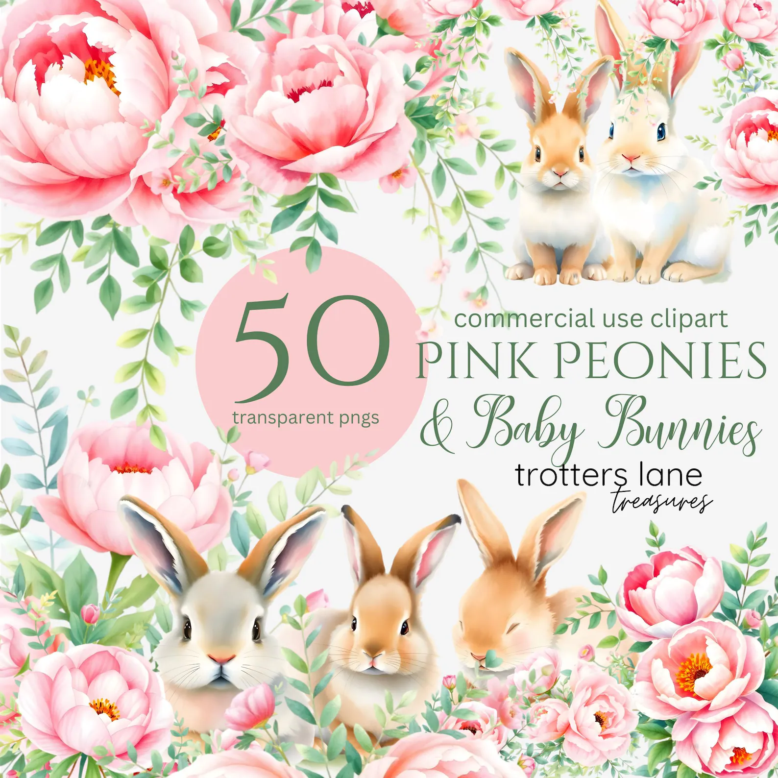 Watercolor Bunny Clipart Mega Pack – 130 PNGs, Spring & Easter Rabbits, Baby Animals, Garden Clip Art, Commercial Use Digital Download