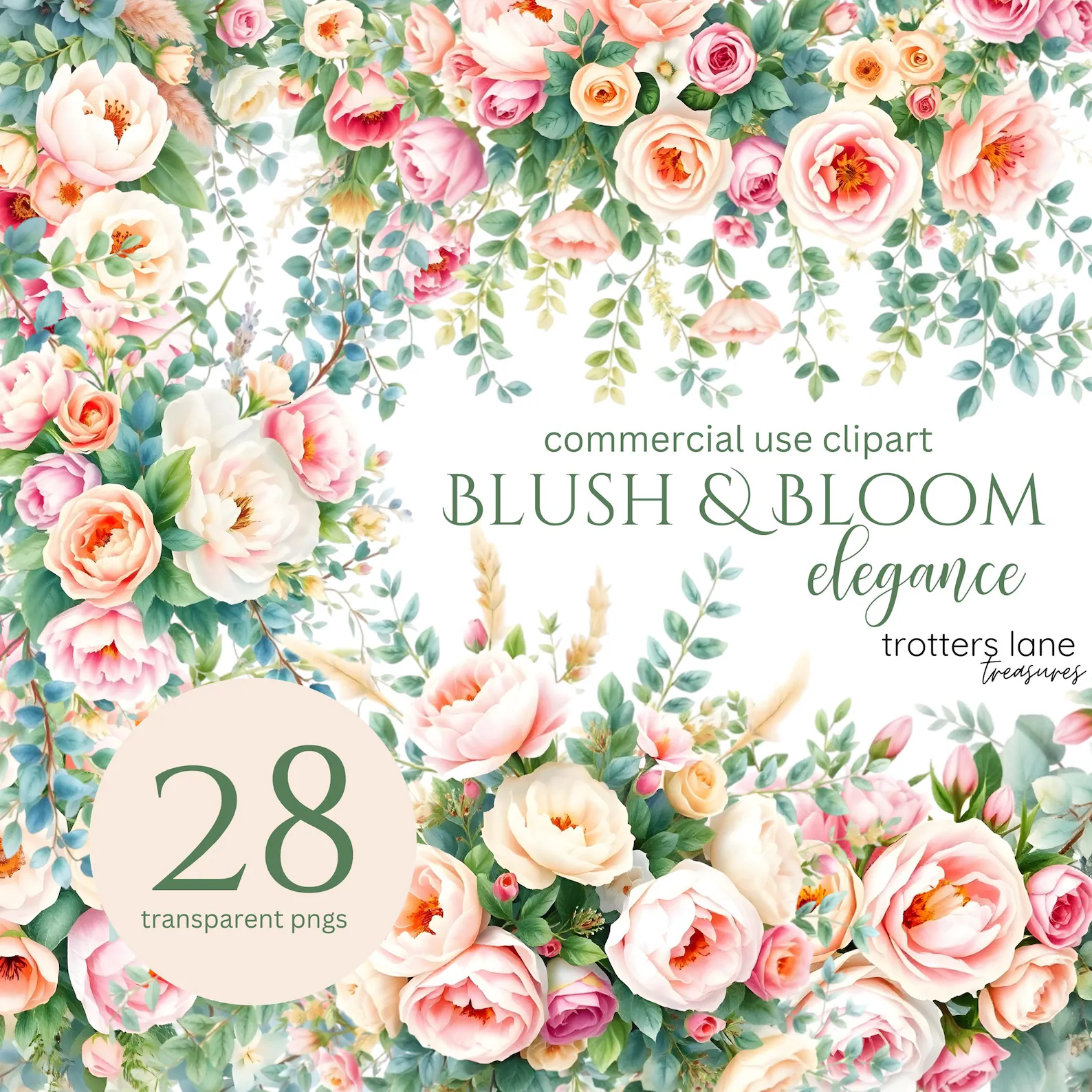 Blush Pink Floral Clipart | Junk Journal Florals, Dusty Rose Flowers, Light Pink Peony PNG, Wedding Botanical Graphics, Commercial Use