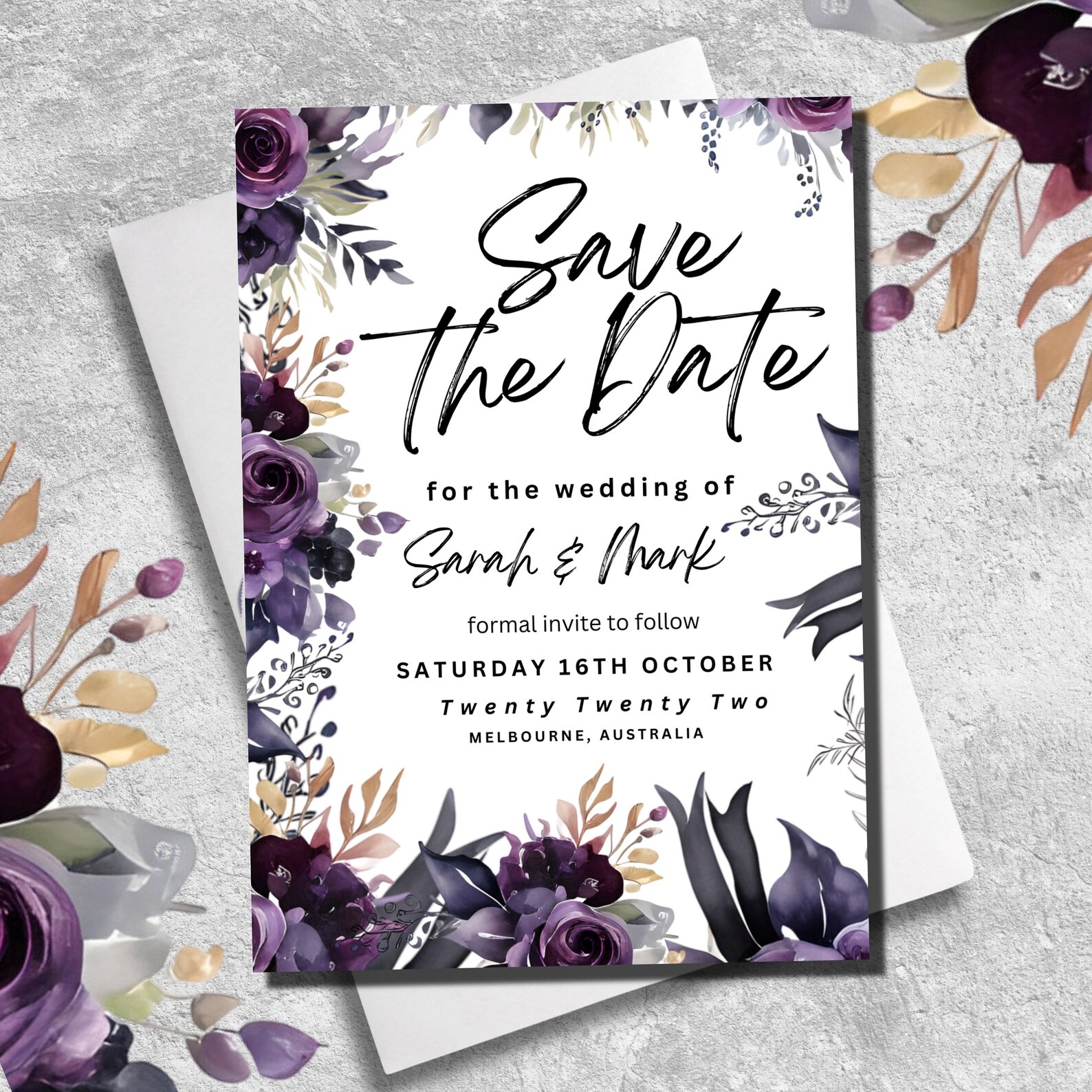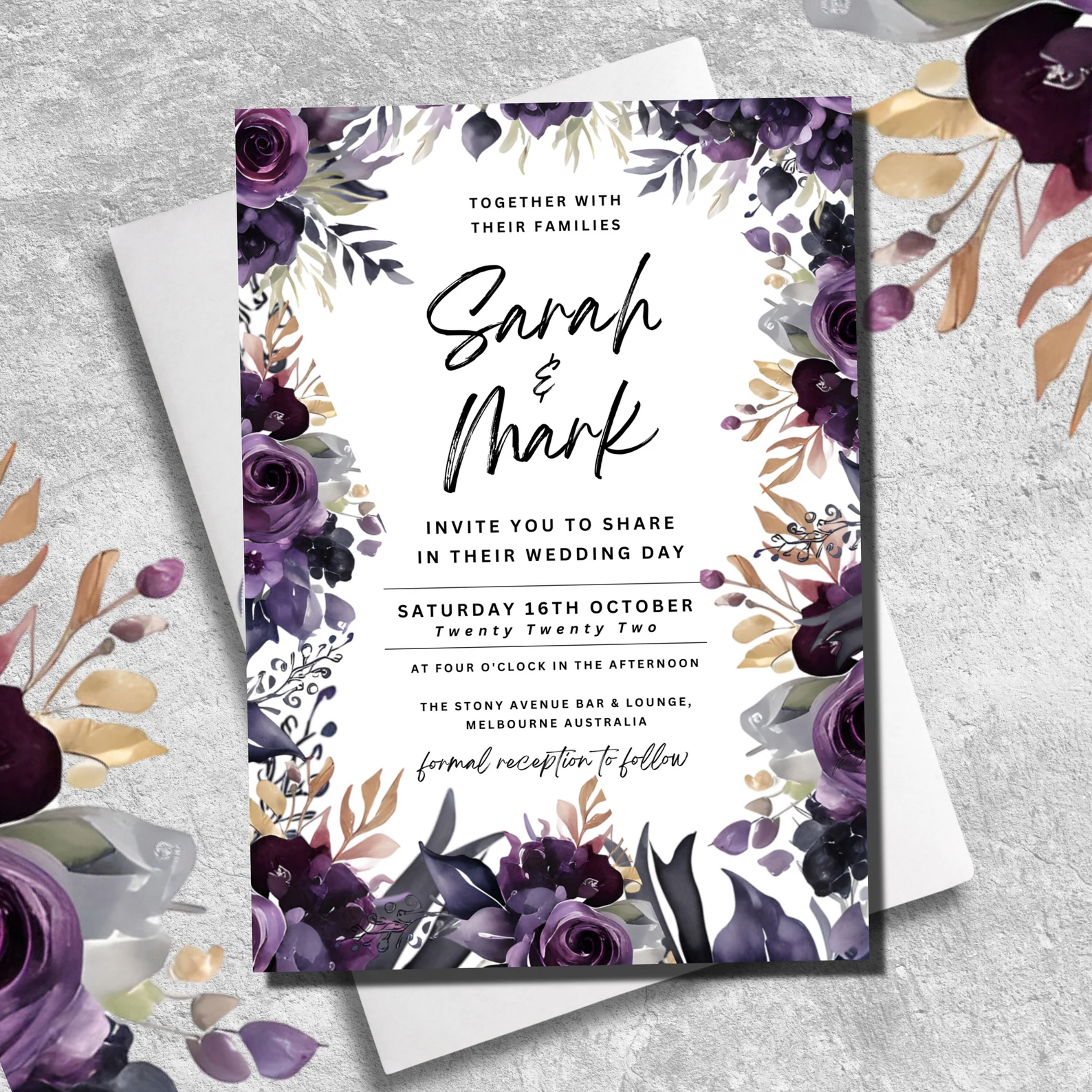 Plum Wedding Invites, Plum, Purple, lavender, Canva Template, Download, Elegant Wedding Invitation