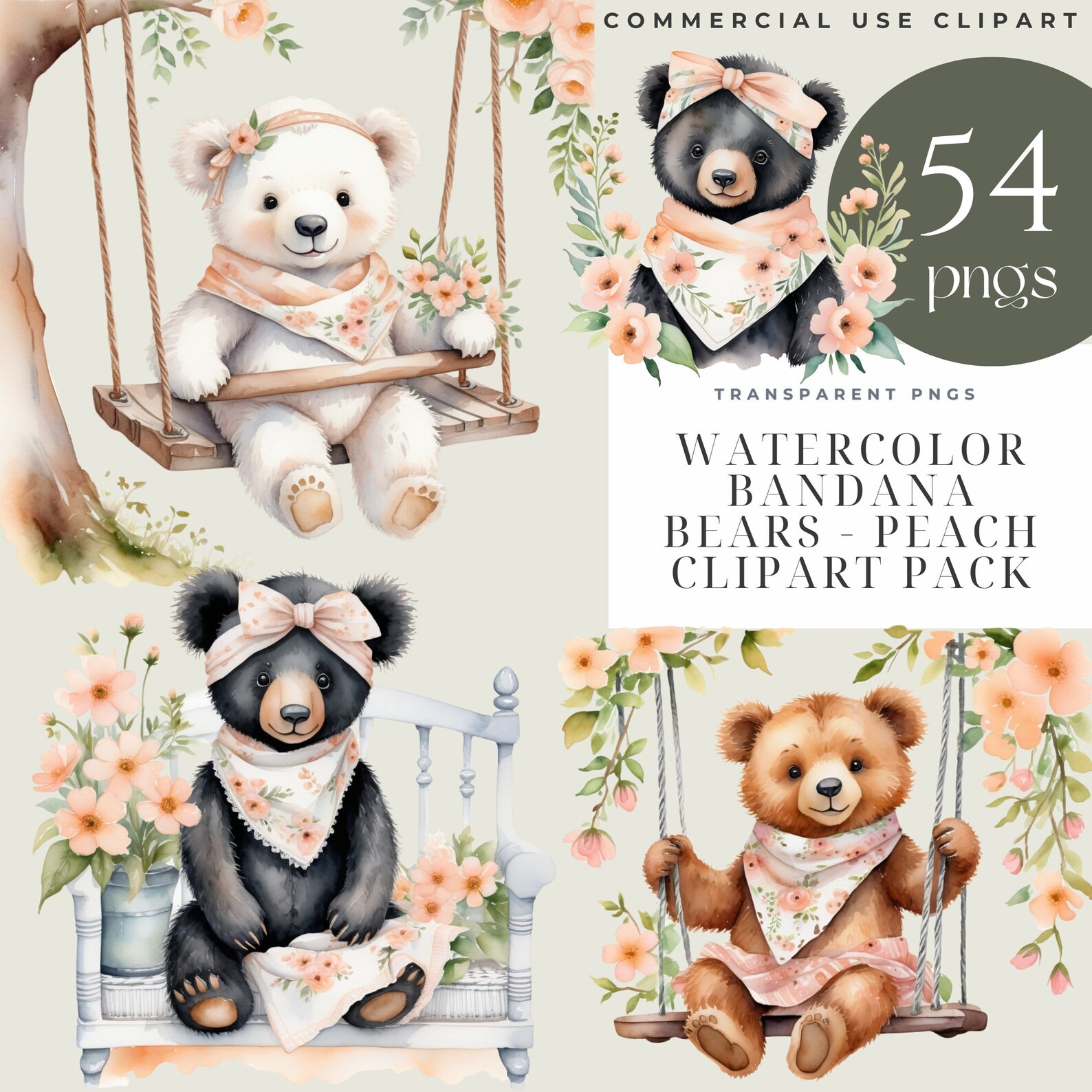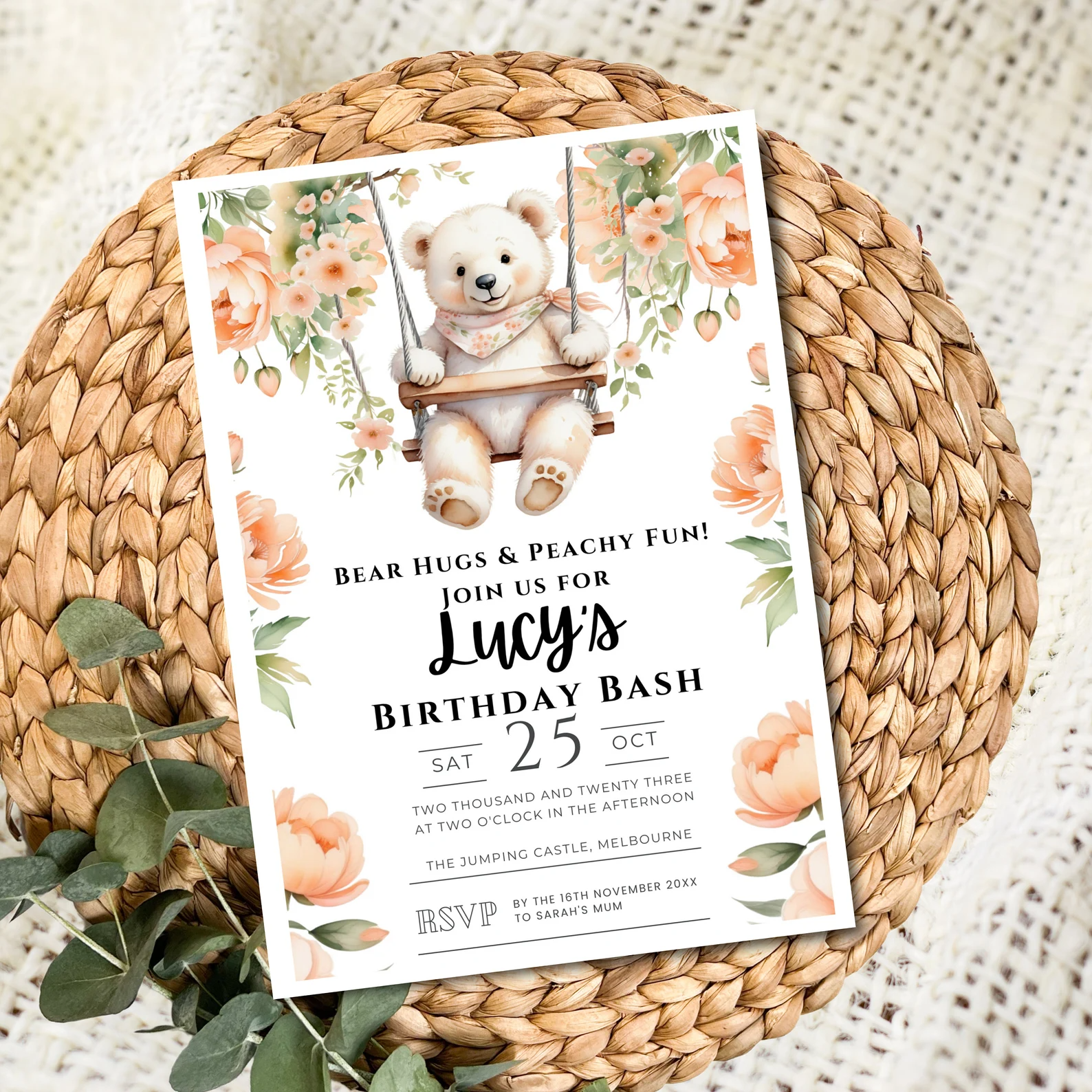 Peachy Bear Birthday Invitation Template - Editable Kids Party Invite, Peach Theme, Download, Bandana Bears Collection