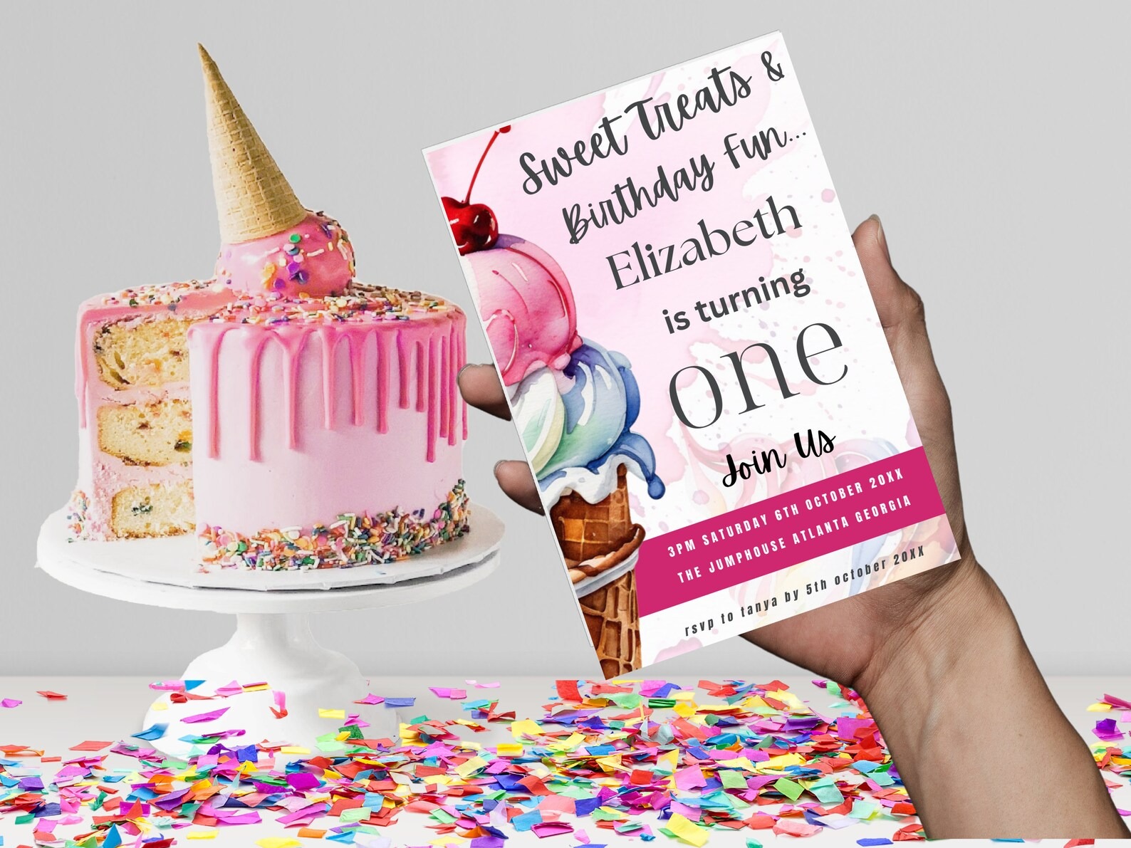 Sweet Treats Birthday Invite, Sweet Treats Invitation, Ice Cream Party, 1st Birthday Invitation, Digital Template, Download, Editable Age