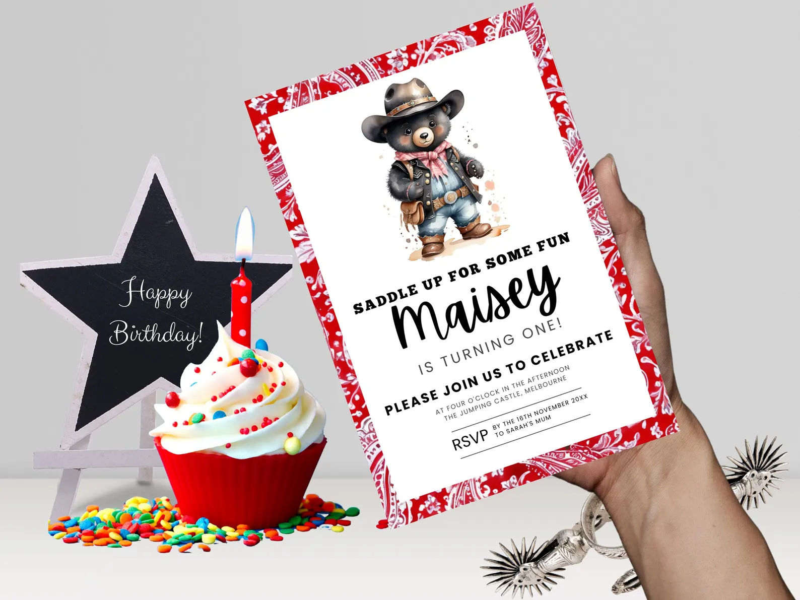 Cowgirl Birthday Invitation For Baby, Western Theme Birthday Invite Girl, Western Theme Girl Invite, Western Birthday Invite Girl, Template
