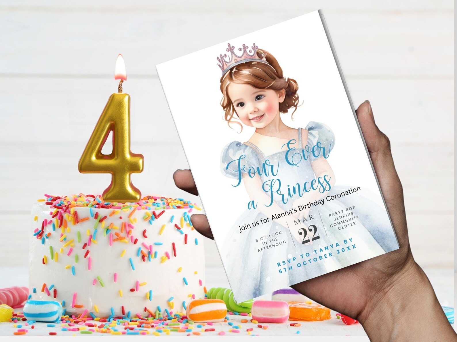 Four Ever A Princess Birthday Invitation, Four Ever Princess Birthday Invitation, 4th Birthday Princess Invitation, Princess Birthday