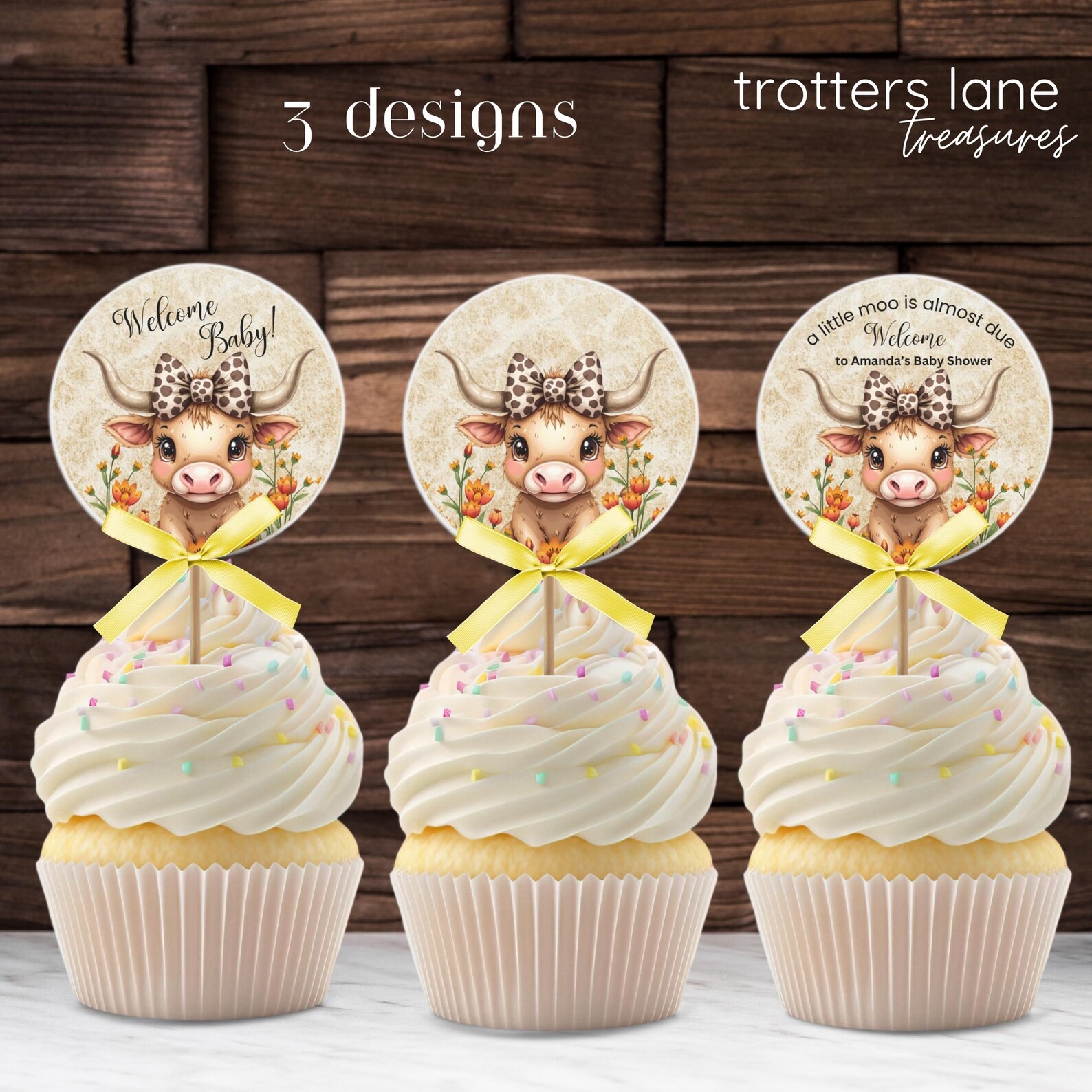 Highland Cow Cupcake Toppers | Little Moo Baby Shower Decor | Rustic Farm Animal Party Picks | Printable & Editable