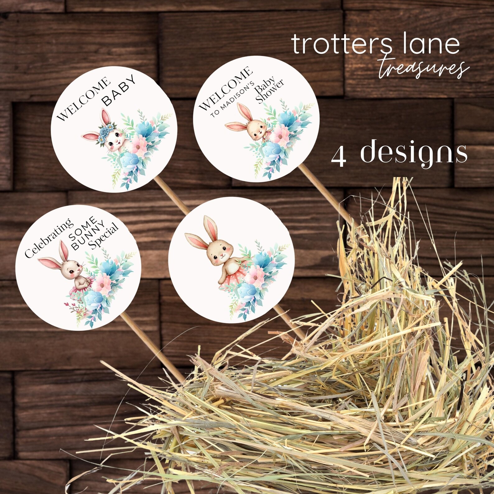 Bunny Baby Shower Cupcake Toppers - Rabbit Party Decorations - Floral Cake Topper - Printable Template - Instant Download