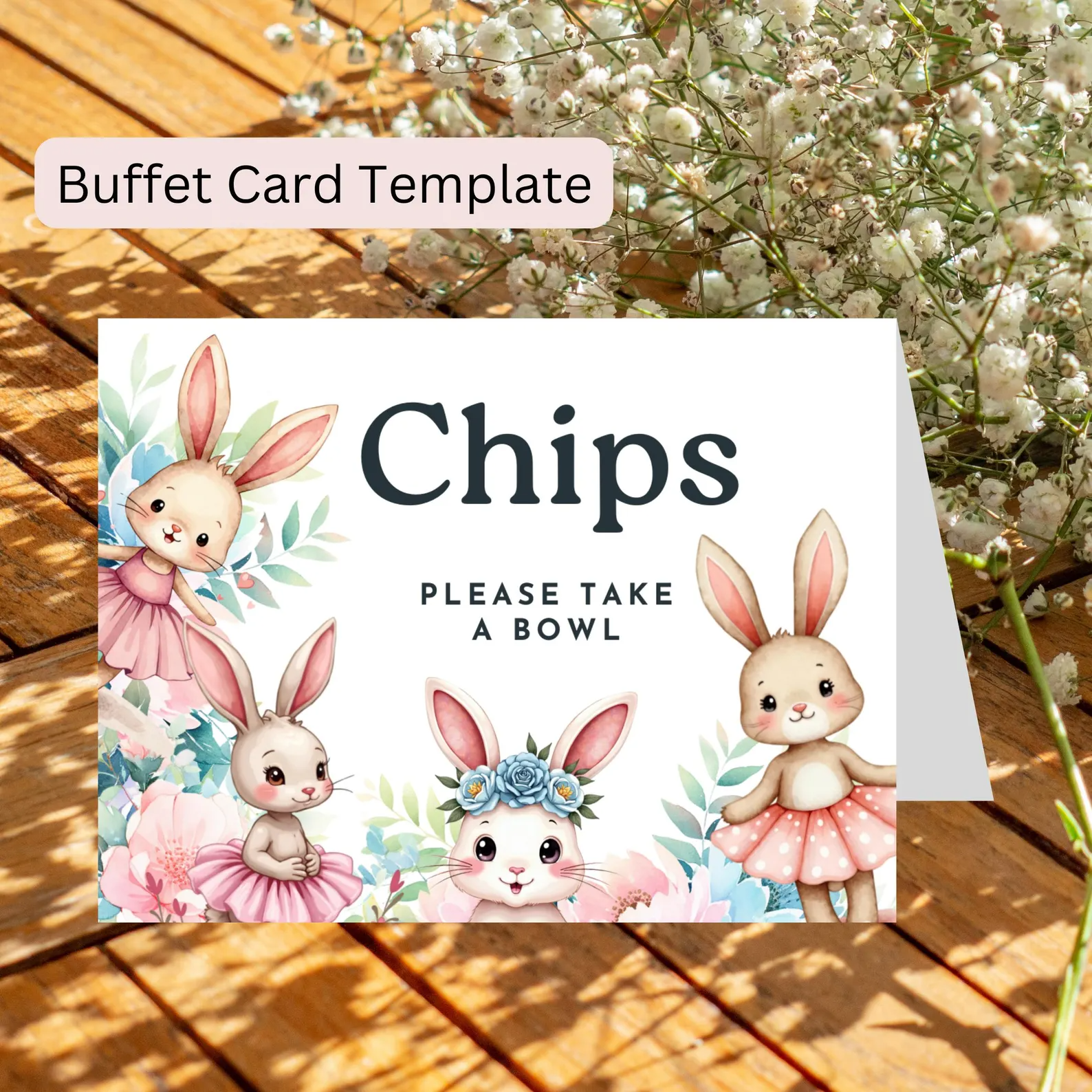Bunny Buffet Card Template - Cute Floral Food Labels - Editable Party Signs - Printable Tent Cards, Baby Shower