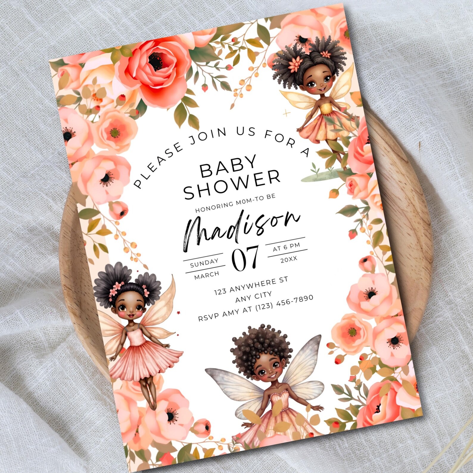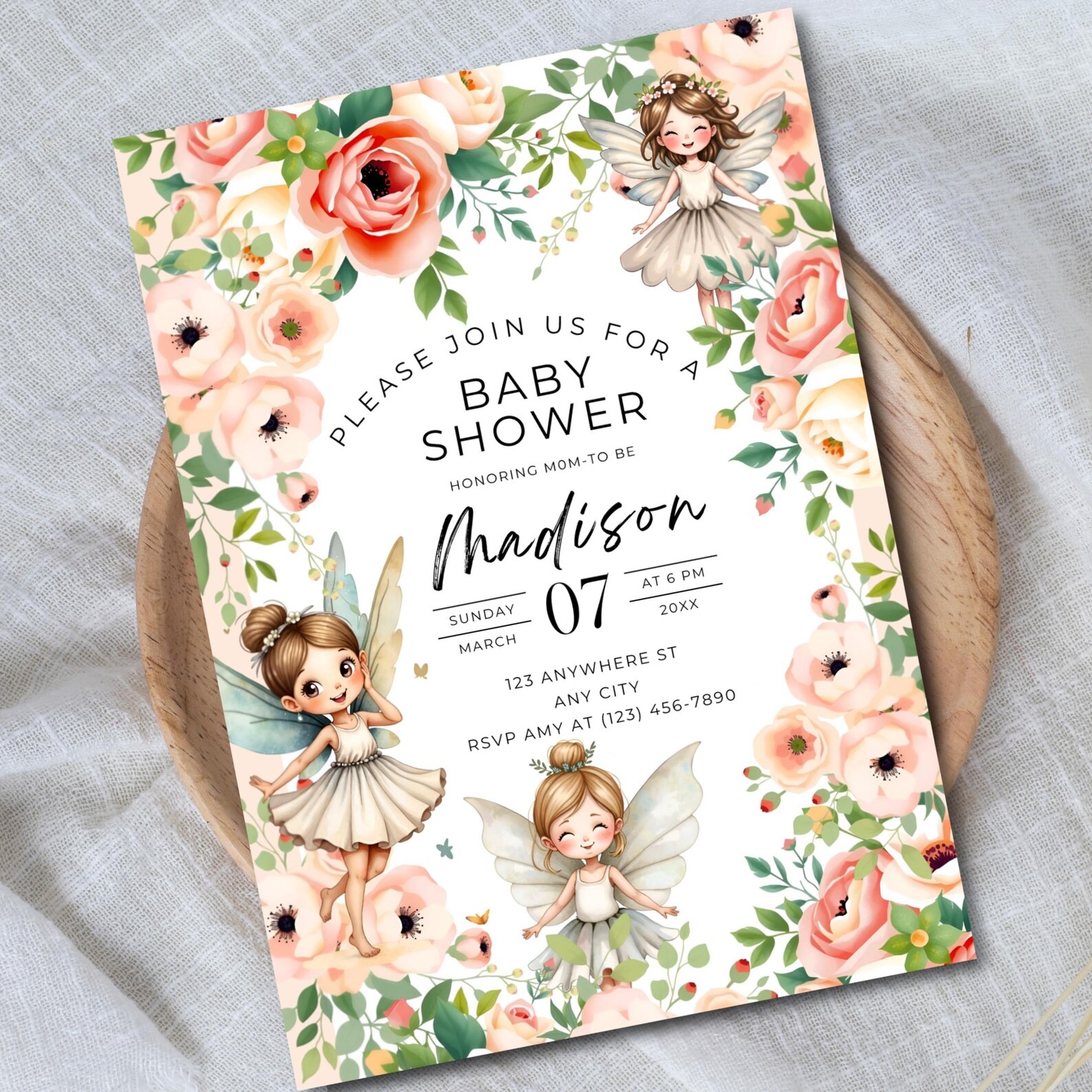 Fairy Garden Baby Shower Invitation Template - Editable Floral Invite - Magical Baby Shower Printable - Pastel Baby Shower, DIY, Fairies