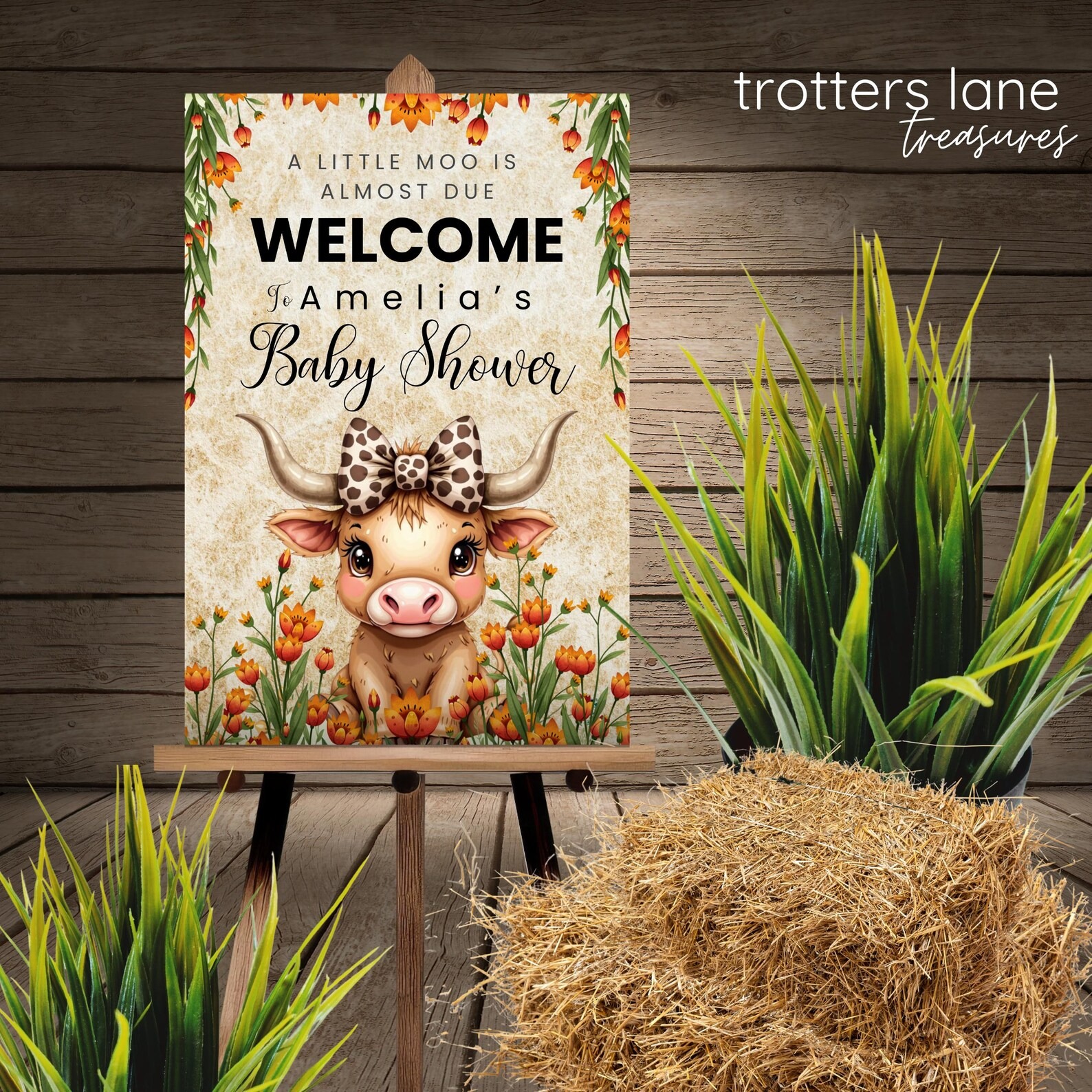 Highland Cow Baby Shower Welcome Sign | Little Moo Printable Decor | Rustic Farm Animal Party Poster