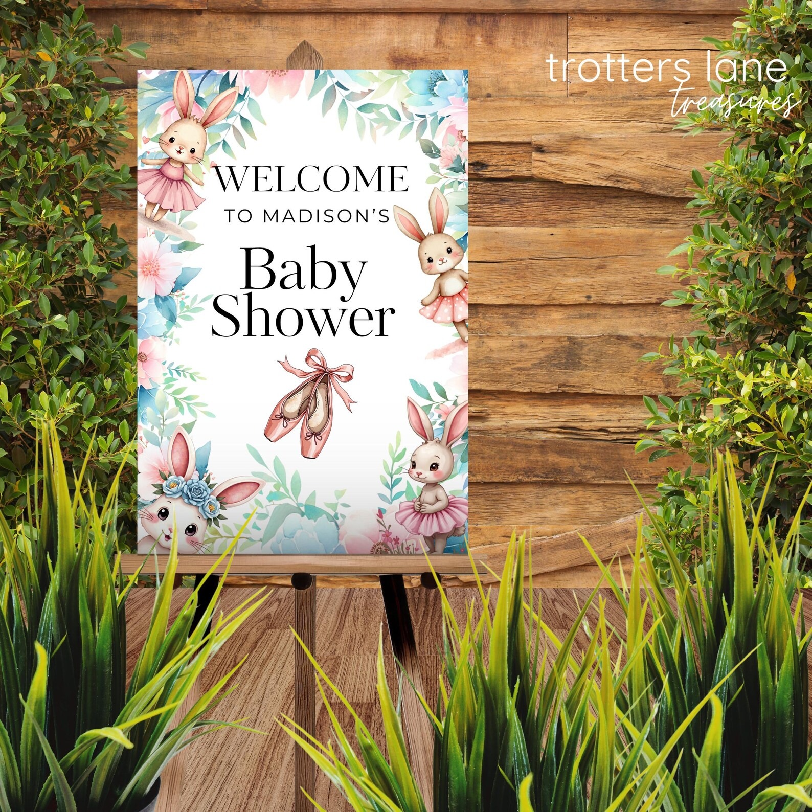 Baby Shower Welcome Sign Template – Editable Bunny Ballet Floral Theme (Instant Download!) Party Poster