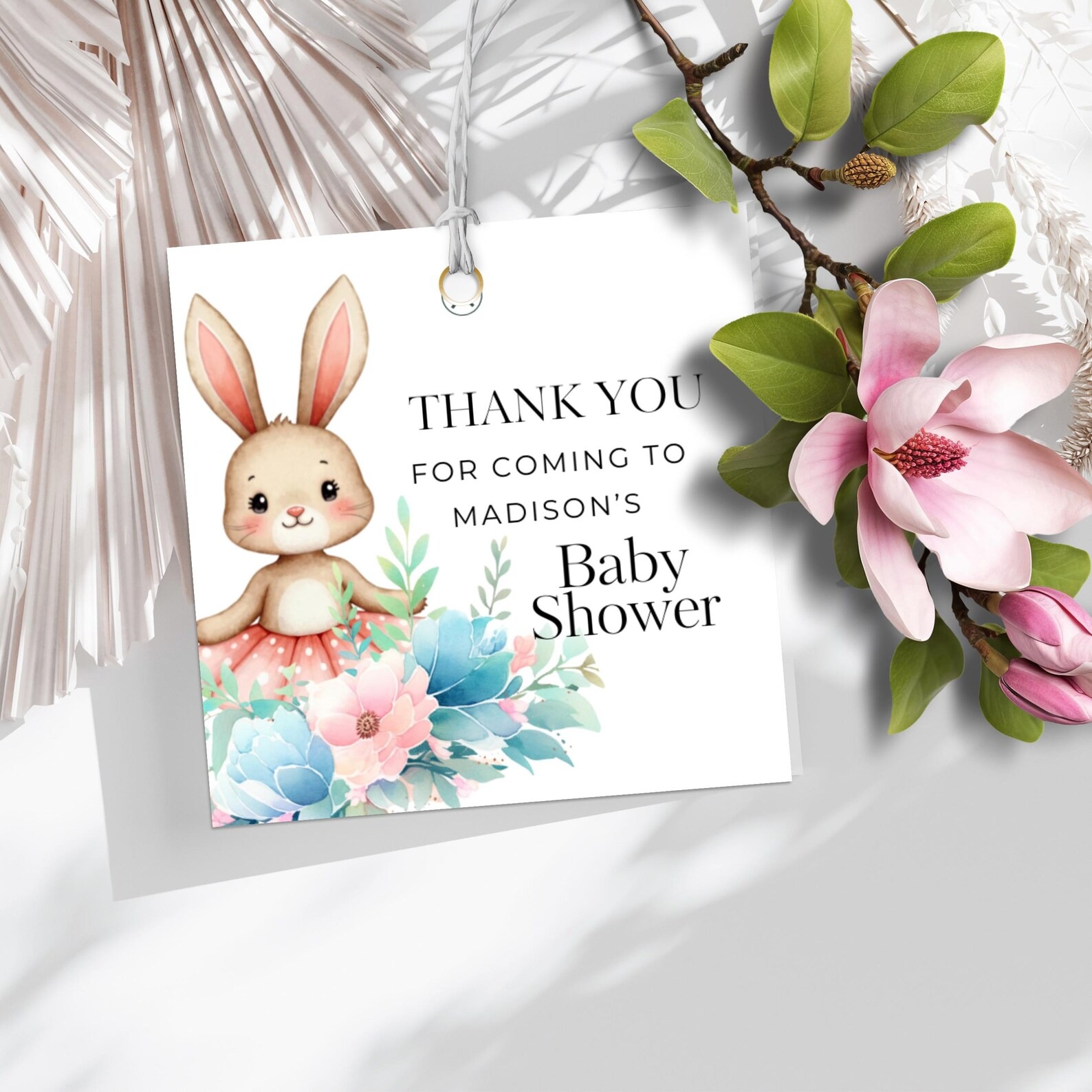 Bunny Baby Shower Favor Tags - Floral Thank You Tags - Editable Rabbit Template - Instant Download
