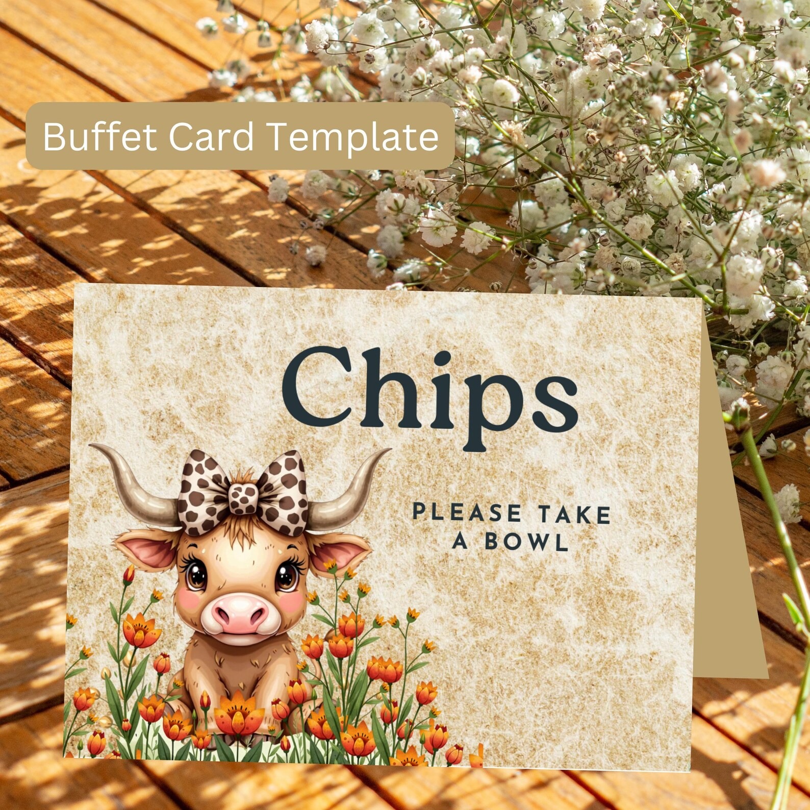 Cow Baby Shower Buffet Cards - Highland Cow Food Labels - Editable Template - Printable Party Decor, Baby Moo, DIY Party
