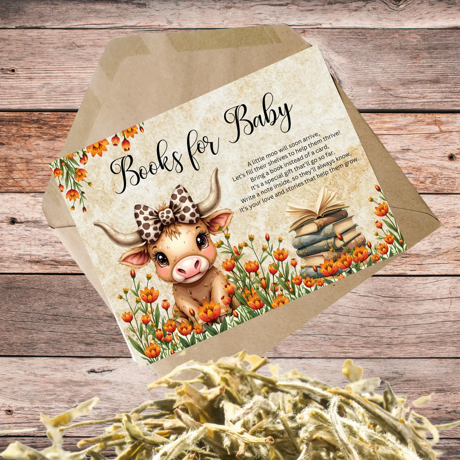 Cow Books for Baby Shower Card - Highland Cow Floral Insert - Bring a Book Instead of a Card - Printable Template