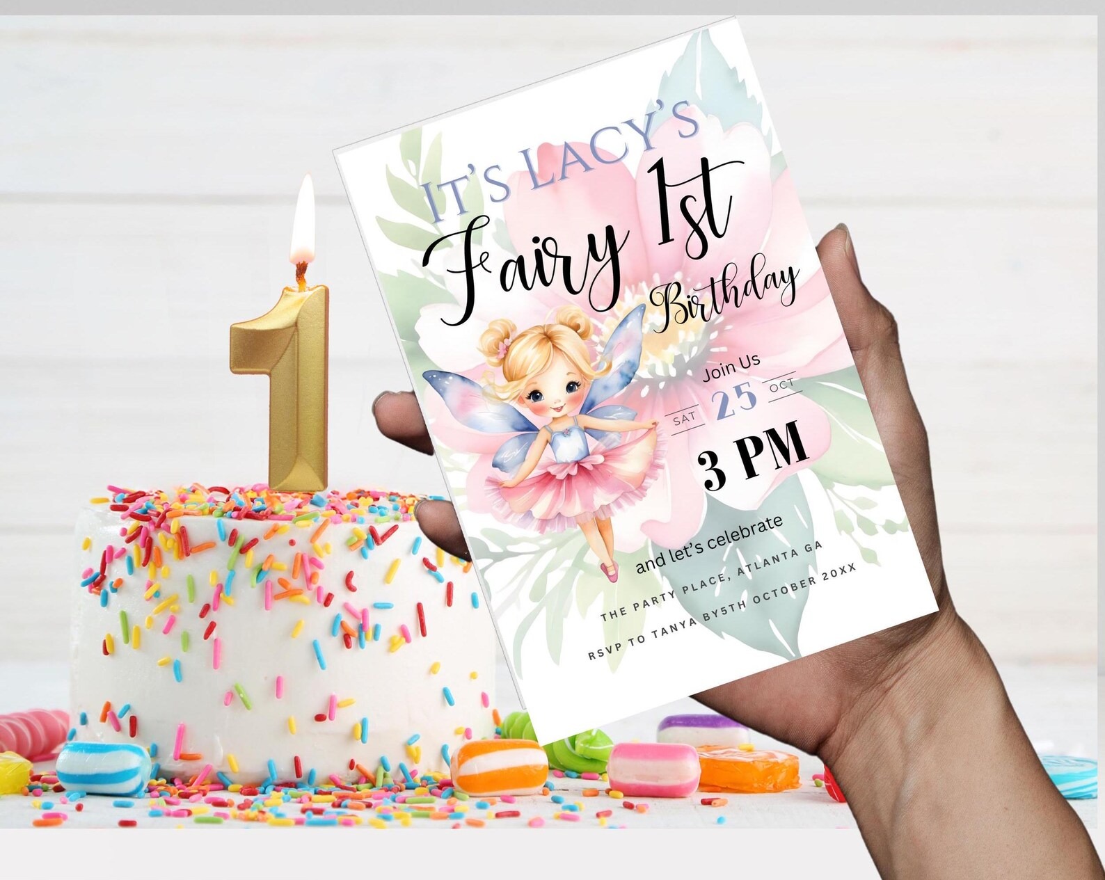 Fairy First Birthday Invitation, Fairy 1st Invite, Editable Template, Download, Fairy Birthday Editable Age, Blonde Girl Birthday Invite
